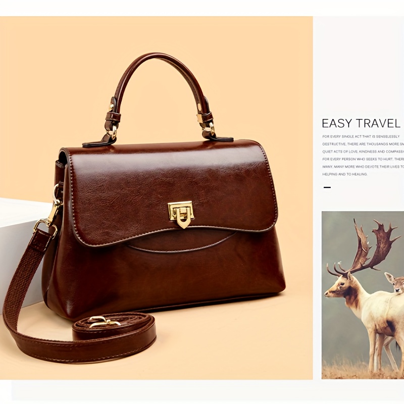 [Genuine Leather Messenger Bag] Genuine Leather Women's Messenger Bag - Classic Professional Purse with Golden-Tone Hardware, Secure Clasp Closure, Black/Coffee Brown, Elegant Handbag, Work Accessory, Vintageinspired Design, Sturdy Handles, Crossbody Purse, Stylish Travelers