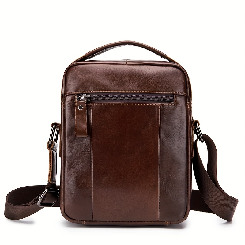 [Leather Crossbody Bag] Deep Brown Leather Crossbody Bag | Men's Genuine Top-Grain Cowhide Messenger Bag with Adjustable Strap, Multi-Compartment Phone Holder, Card Slots & Cash Pocket for Everyday Use, Work, Travel