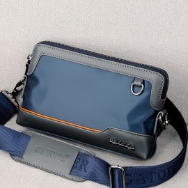 Men'S Premium Oxford Fabric Crossbody Bag with Adjustable Strap - Multi-Compartment Casual Shoulder Bag for Everyday Commute & Outings, Royal Blue with Orange Accents - Ideal Gift for Boyfriend & Family, Crossbody Purse, Versatile Travel Purse, Modern Accessory, Durable Construction, Compact Purse, Urban Commuters, Daily Essentials, Sleek Design, Sturdy Construction, Urban Professionals