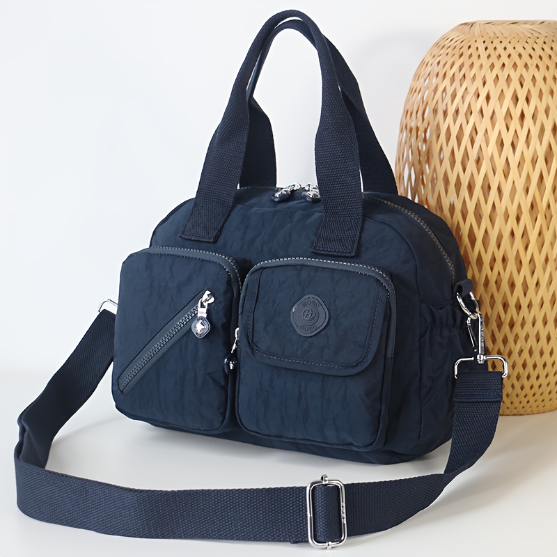 BO Women'S Multi-Pocket Nylon Crossbody Bag - Large Capacity Detachable Shoulder Strap, Multiple Zipper Pockets, Casual Style for Travel & Commuting, Available in Khaki, Light Purple, Dark Green, Watermelon Red, Black, Travel Bag, Commuter Handbag, Stylish Accessory, Durable Zipper Closure