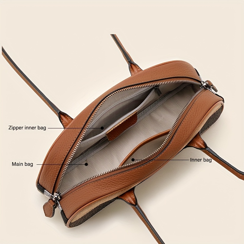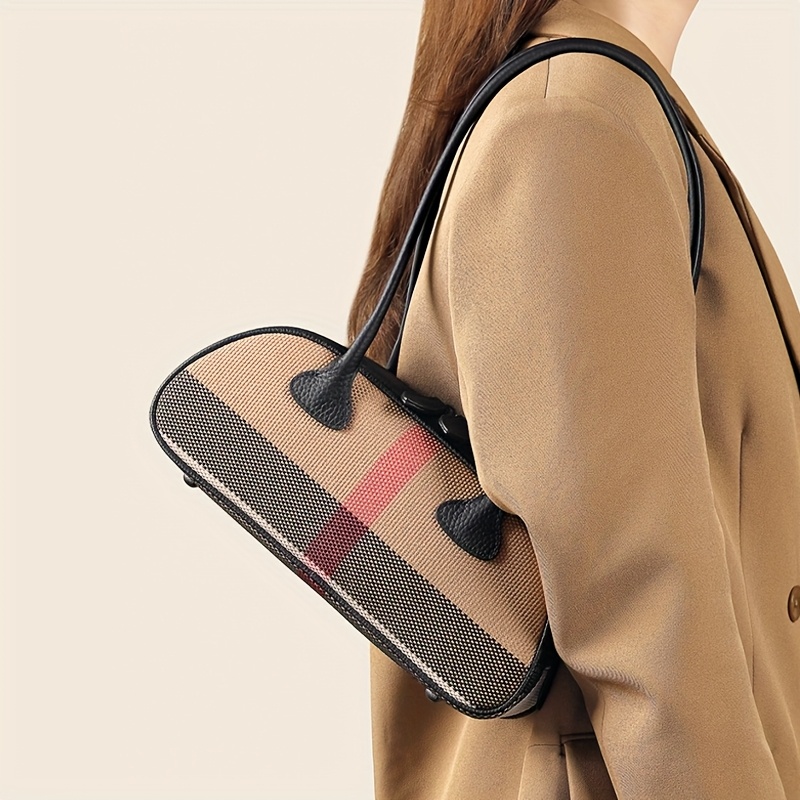 Ondy Women's Vintage Plaid & Cowhide Messenger Bag & Baguette Clutch - Caramel Brown/Black, Adjustable Strap, Zipper Closure, Nylon Lining - All-Season Commuting, Travel & Office Handbag for Women & White-Collar Workers, Cowgirl Purse, Daily Commuting Accessory, Twotone Design, Sturdy Handle Construction