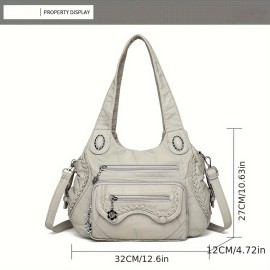 Women'S Retro Y2K Punk Style Tote Handbag with Multiple Pockets - & Vintage 2000s Fashion Crossbody Bag, Golden-Tone Hardware & Detachable Strap, Zipper Closure For Dates, Parties, Casual Outings (, Light Brown, Sky, Solid Color Design