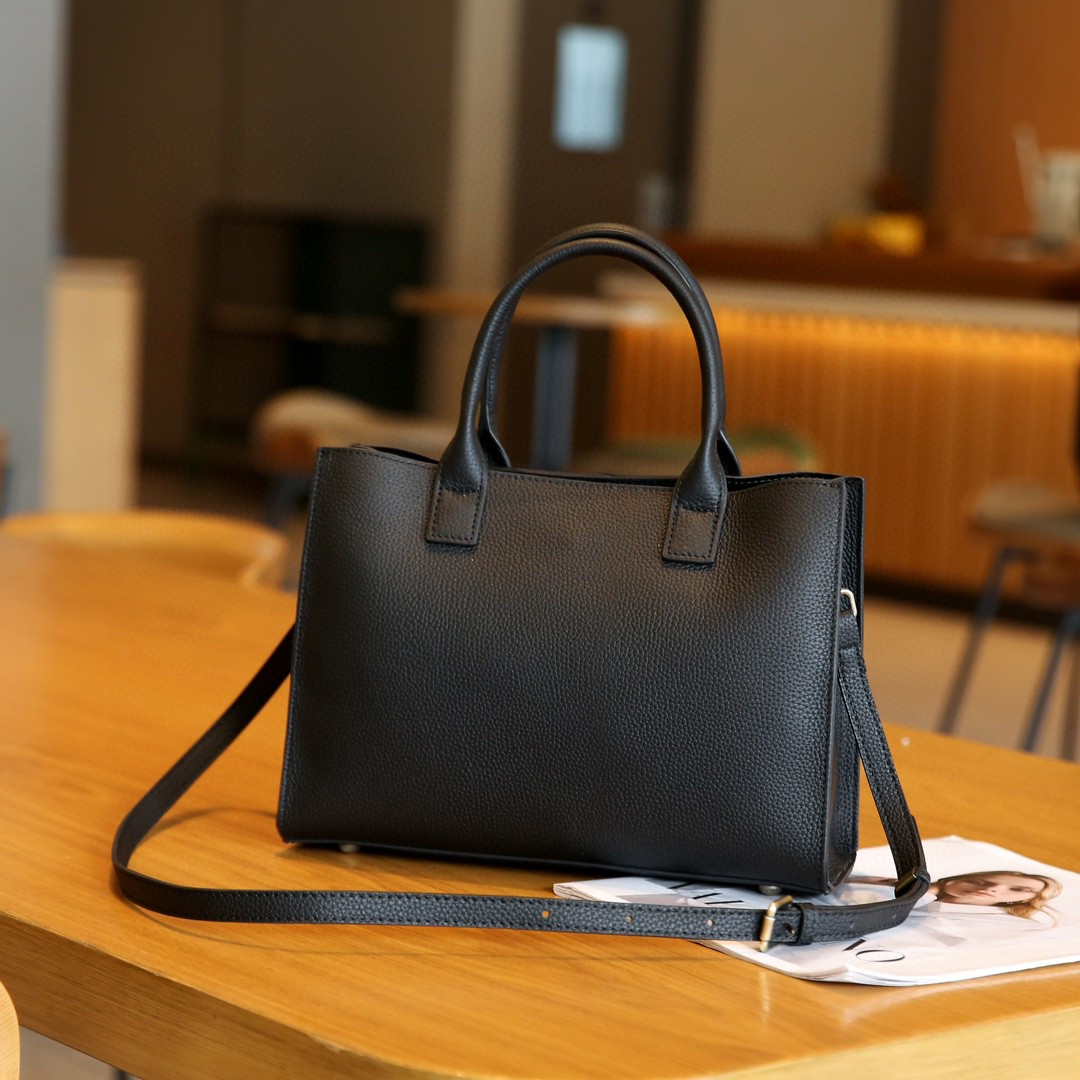 Women's Genuine Leather Handbag - Large Capacity Convertible Crossbody/Handbag with Detachable Strap, Golden-Tone Hardware & Secure Zipper Closure, Multi-Color Options (Black, Yellow, Red, Grey, Beige, Olive Green) - Durable Everyday Work & Travel Bag, Minimalist Design, Lined Interior, Spot Clean Only, Made in Guangzhou