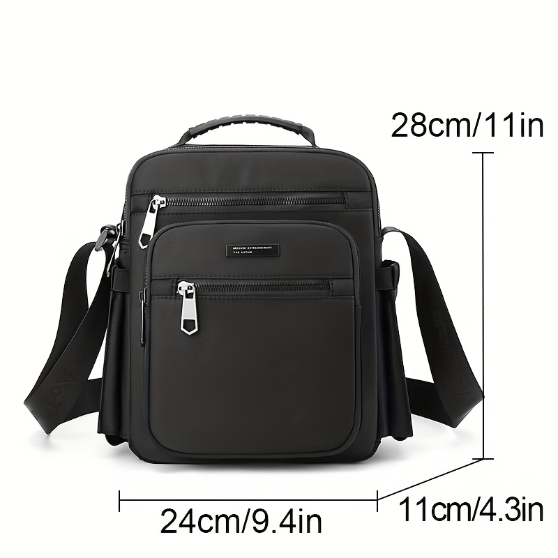 [Casual Crossbody Bag] Large Capacity Men's Casual Oxford Cloth Crossbody Bag | Adjustable Strap, Zippered Pockets, Durable Black Shoulder Bag for Everyday Use