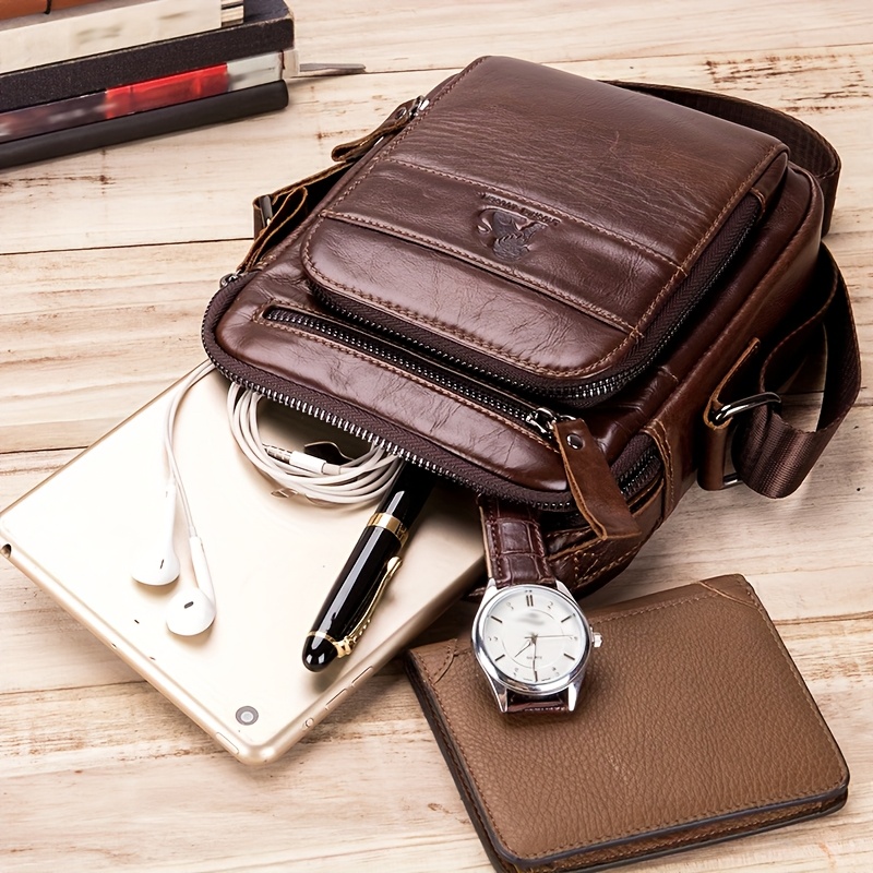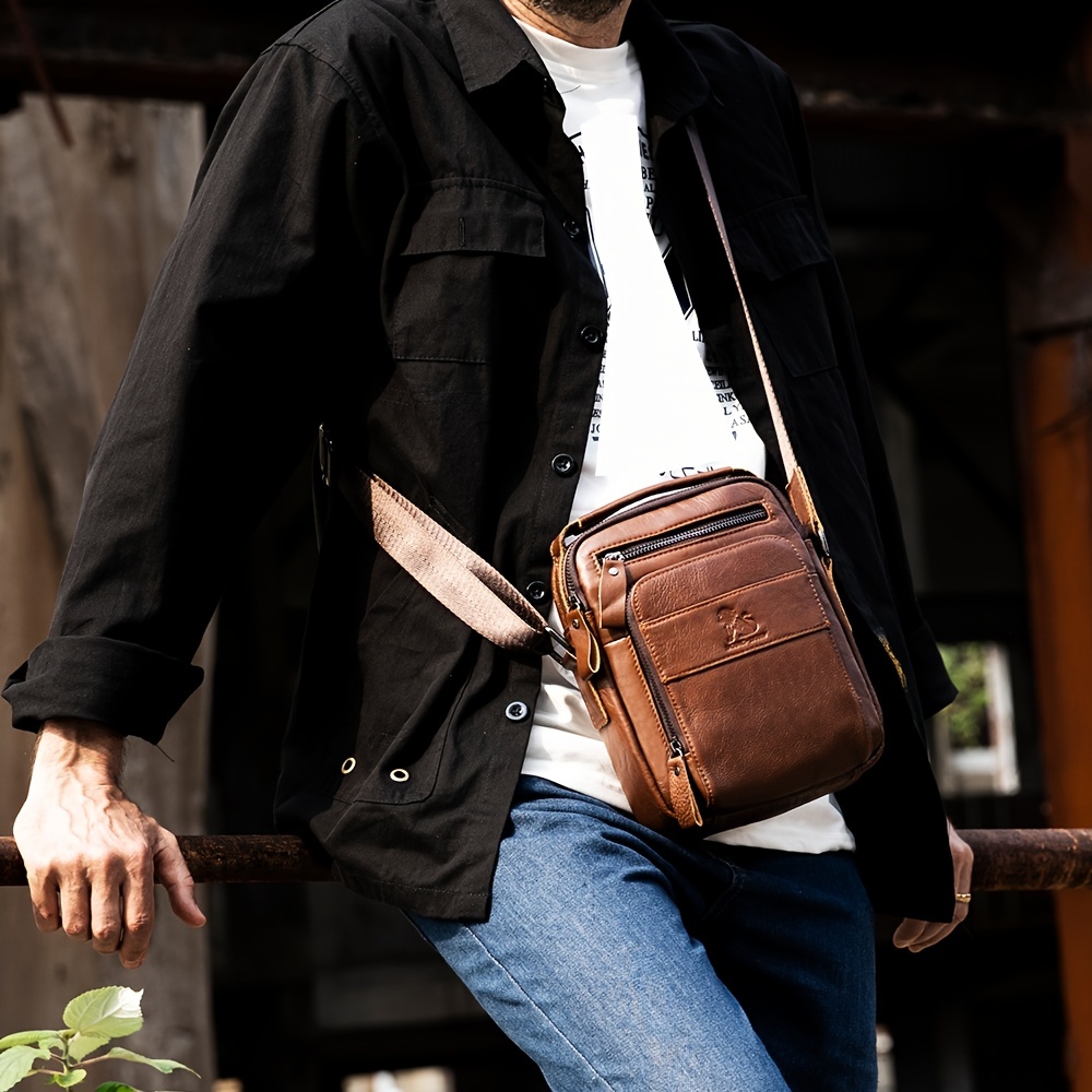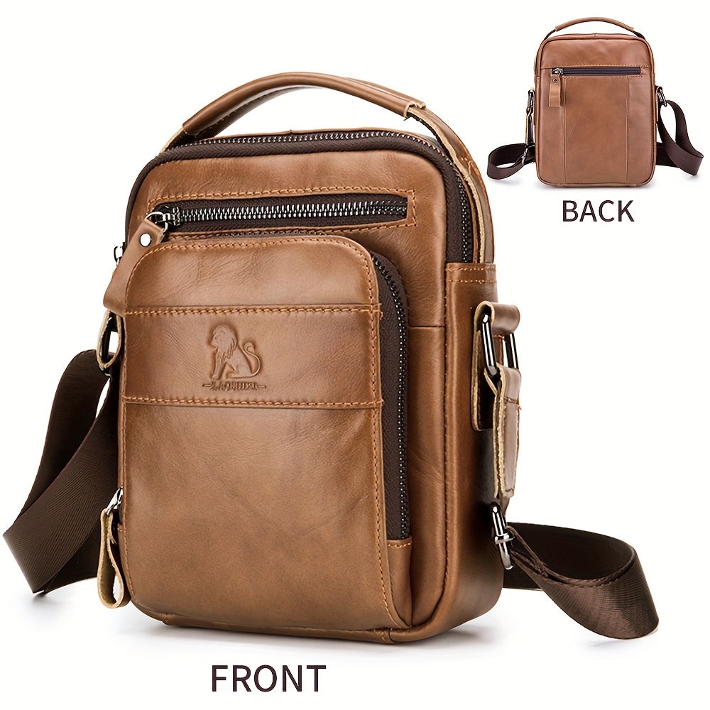 Double-layer business crossbody bag, portable shoulder bag casual bag, unisex Genuine Leather crossbody, top layer Genuine Leather square bag, Genuine Leather single-shoulder handbag, suitable for Valentine's Day, Teacher's Day, back-to-school, graduation, and Christmas gifts