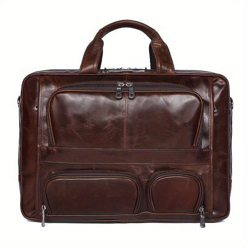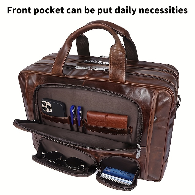 [Leather Briefcase] Genuine Leather Business Briefcase | Large Capacity Cowhide Leather Handbag for Men Commuting