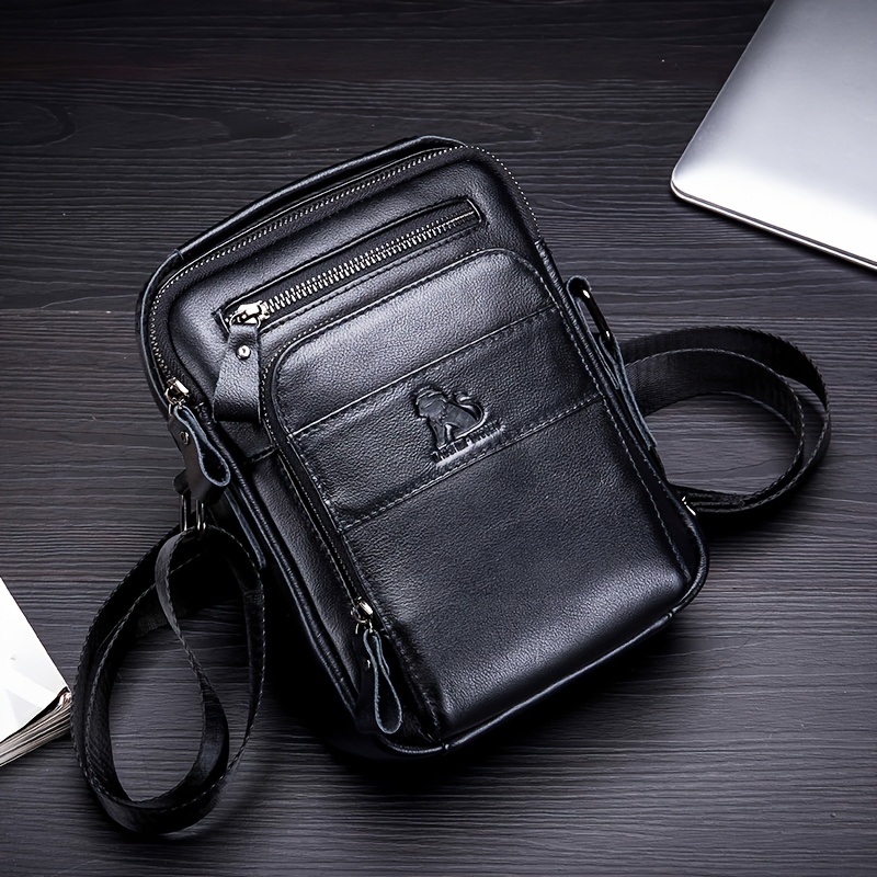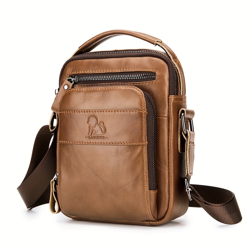 [Leather Crossbody Bag] Deep Brown Leather Crossbody Bag | Men's Genuine Top-Grain Cowhide Messenger Bag with Adjustable Strap, Multi-Compartment Phone Holder, Card Slots & Cash Pocket for Everyday Use, Work, Travel