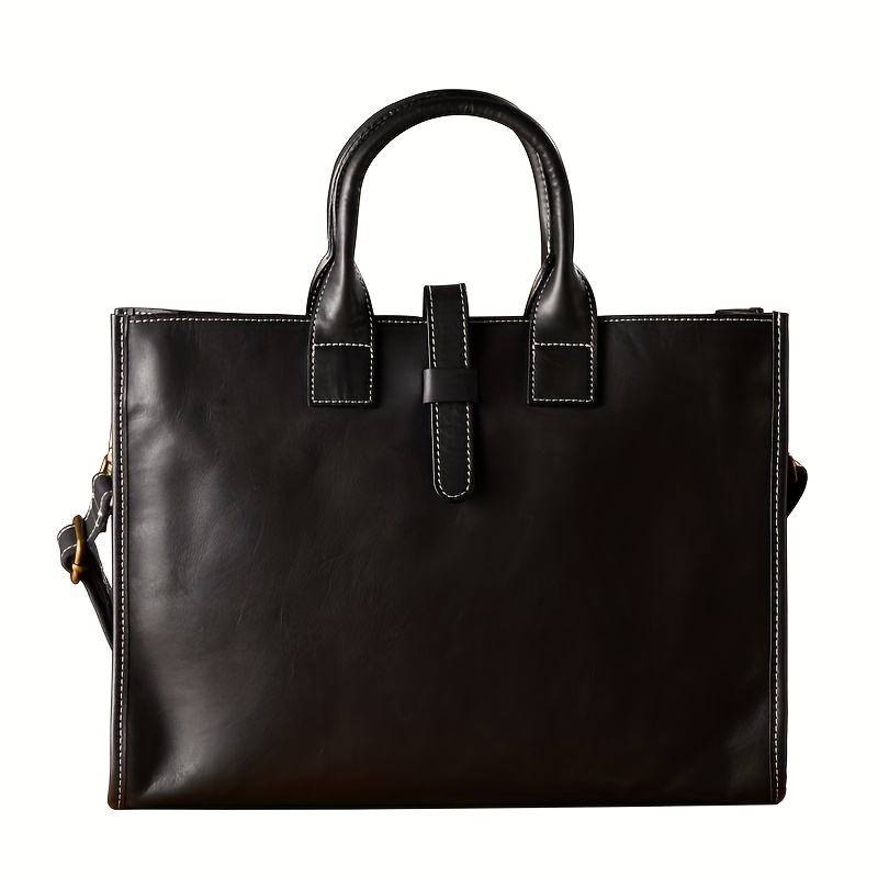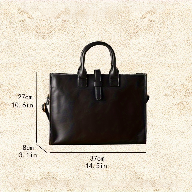 Men'S Genuine Leather Briefcase - Vintage Large Capacity Shoulder Bag with Adjustable Strap, Black & Brown, Durable for Business, Commuting, and Everyday Use, Commuting Accessory | Vintage Style Bag | Genuine Leather Bag, Large Capacity Bag, Small Briefcase For Men, Laptop Bag For Men