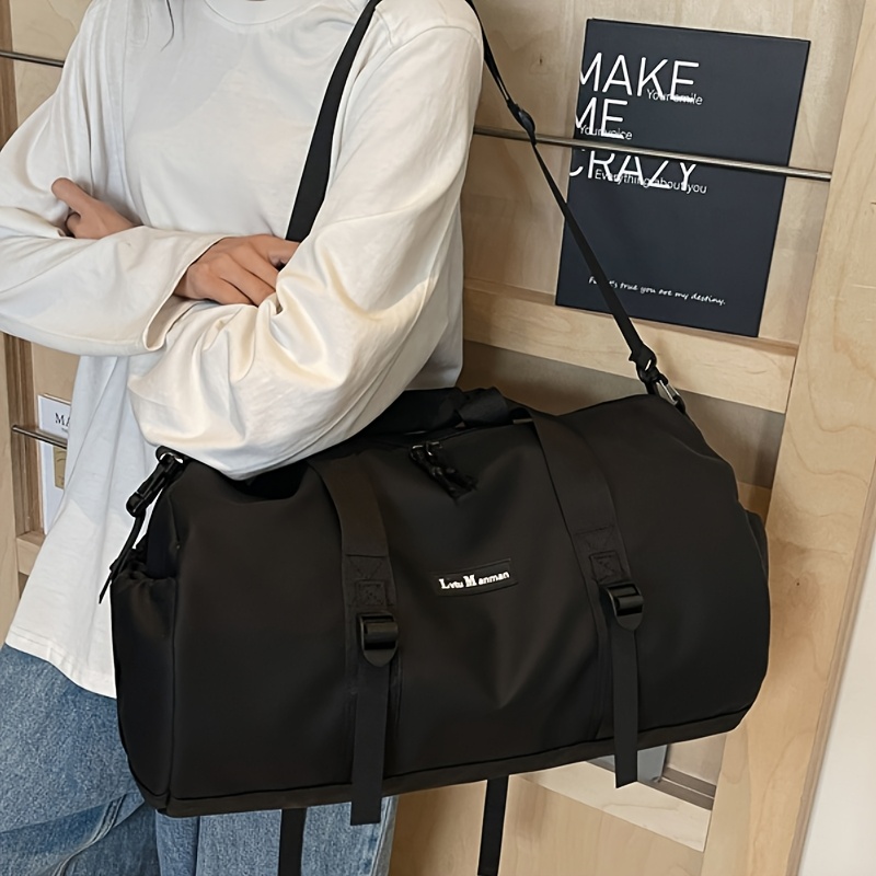 Men's Large Capacity Gym Duffel Bag - Sleek Black Adjustable Shoulder Straps, Durable Fabric for Travel, Business & Daily Commute - Spacious Sport Bag with Multiple Compartments, Gym Bag, Highend Texture, Workout Gear, Modern Design, Premium Material, Fitness Enthusiasts
